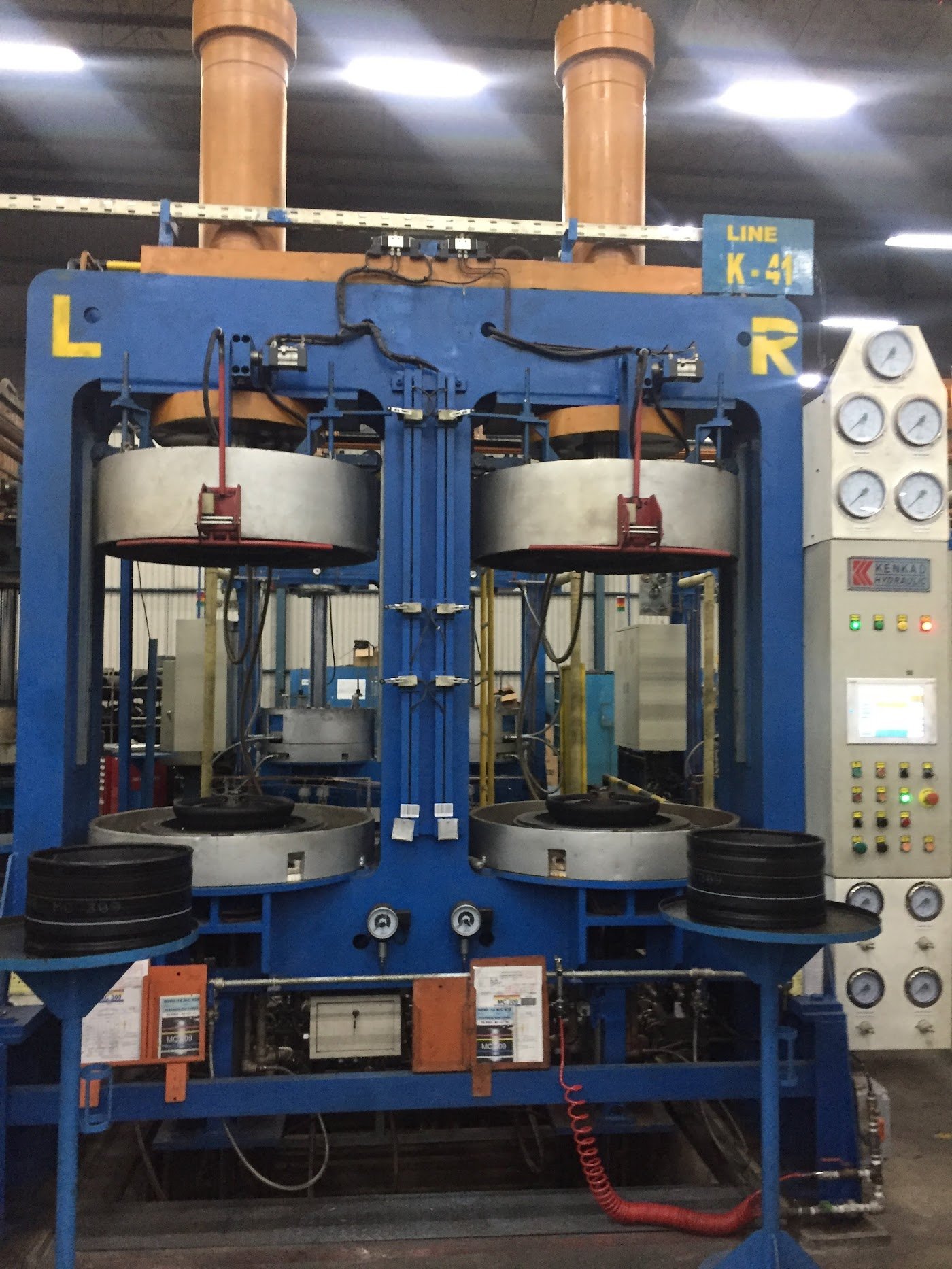 - Tekanan Tinggi & Stabil: Sistem hidrolik bertenaga untuk memastikan ban tercetak sempurna tanpa cacat.