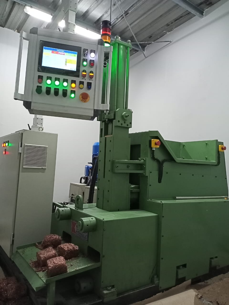 Teknologi press hidrolik 60-ton dengan sistem ejection otomatis, mengubah chips dan serbuk logam menjadi briket padat bernilai tinggi – solusi ekonomis untuk masalah limbah produksi skala menengah.