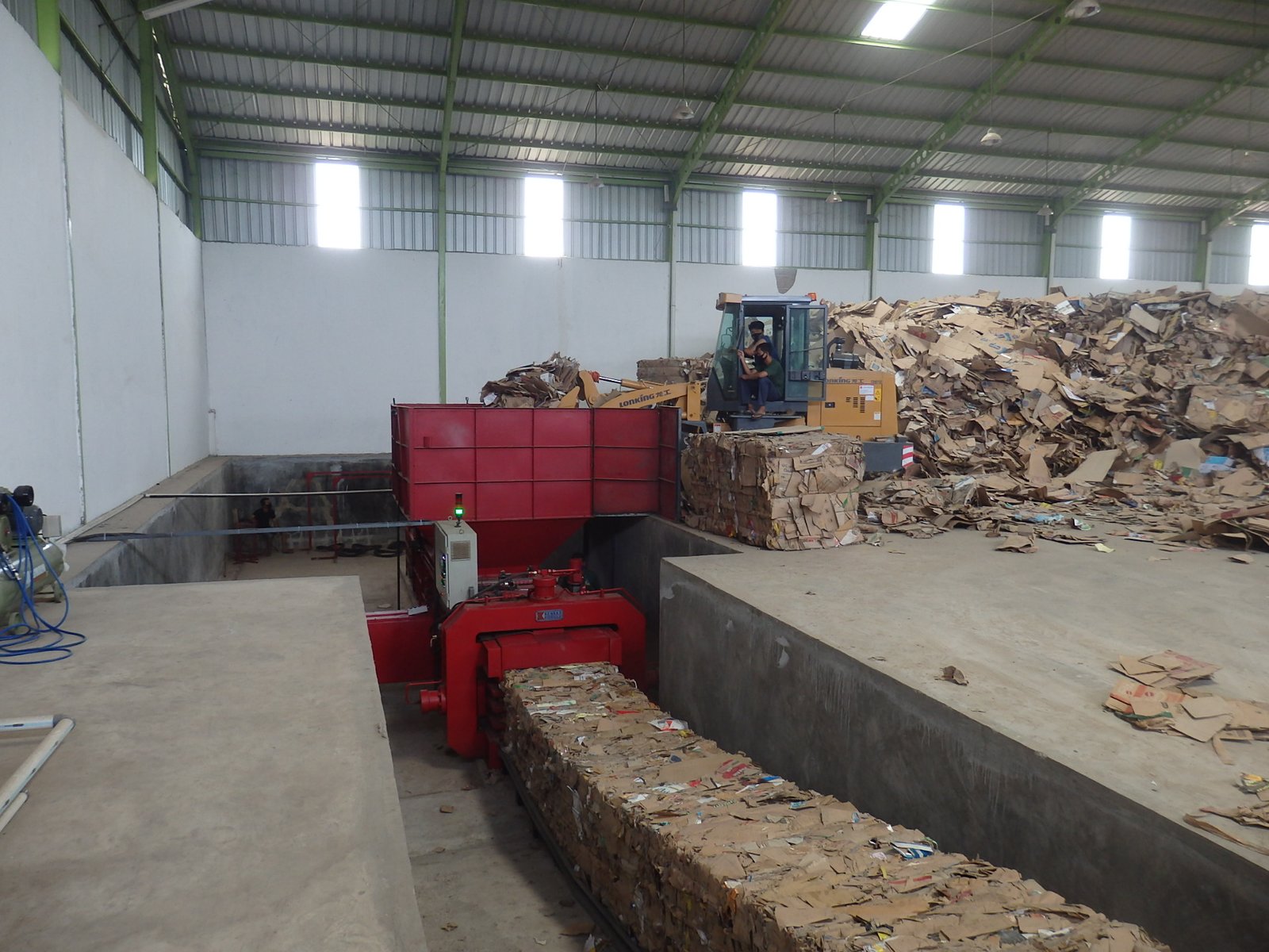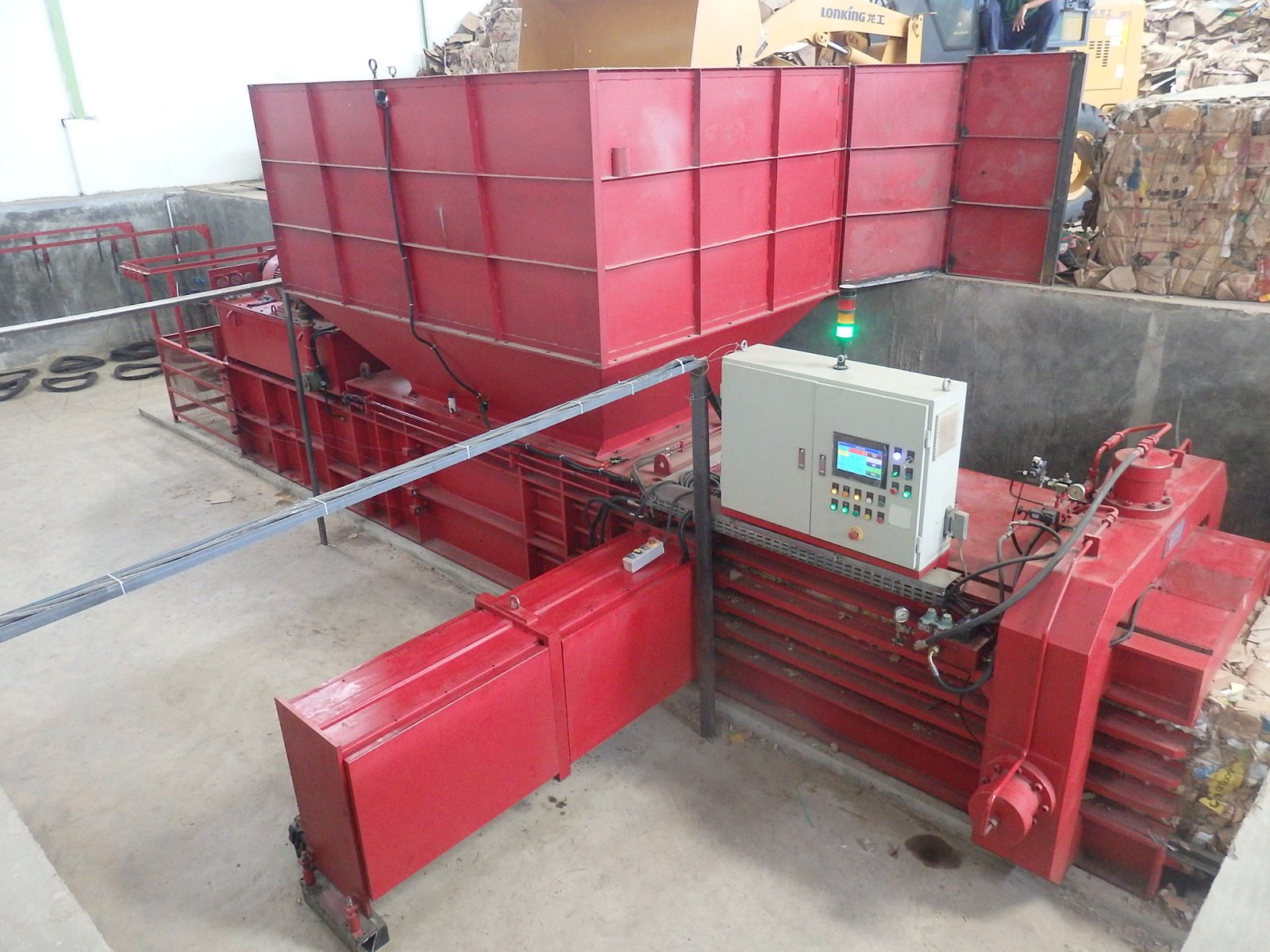 Kardus industri (OCC), kertas campuran massal, plastik PET baled, plastik film LDPE (dengan hydraulic pusher), dan berbagai material daur ulang volume tinggi.